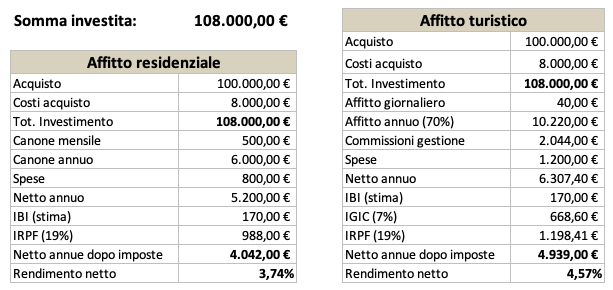 Ciò che balza subito all’occhio è la differenza tra le due percentuali di rendimento, che risulta essere tutto sommato irrisoria rispetto a quanto viene spesso dichiarato da alcuni proprietari o agenzie.